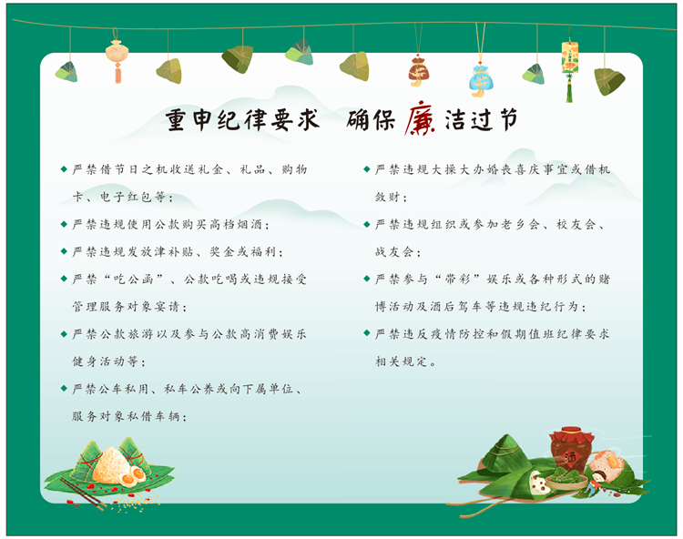 定制廉潔提醒卡。端午廉潔提醒卡內(nèi)容經(jīng)過精選,融合廉潔提醒、“十個嚴禁”、端午詩詞鑒賞等內(nèi)容,在品味端午文化的同時,為全體黨員干部職工擰緊紀律“發(fā)條”,確保風清氣正過端午。